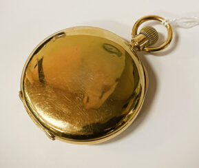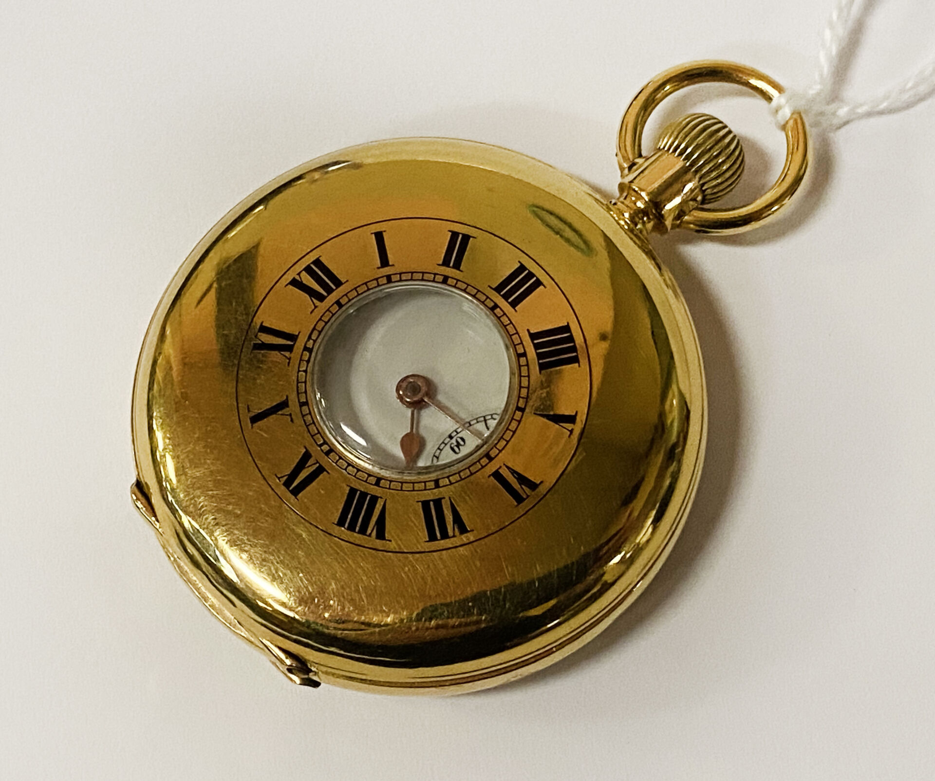 18CT GOLD HALF HUNTER POCKET WATCH - TOTAL APPROX 110 GRAMS - WORKING
