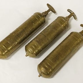 3 BRASS VINTAGE FIRE EXTINGUISHERS