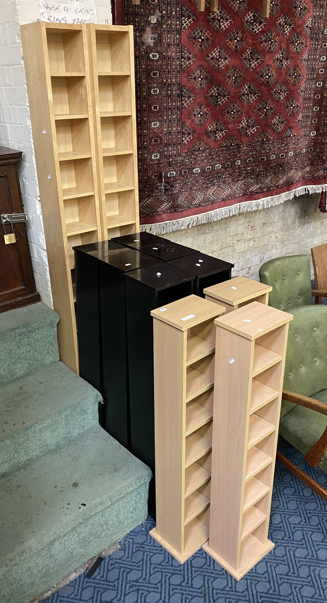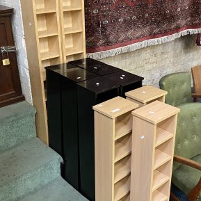 6 BLACK CD RACKS, LIGHT CD RACK & 2 TALL CD RACKS