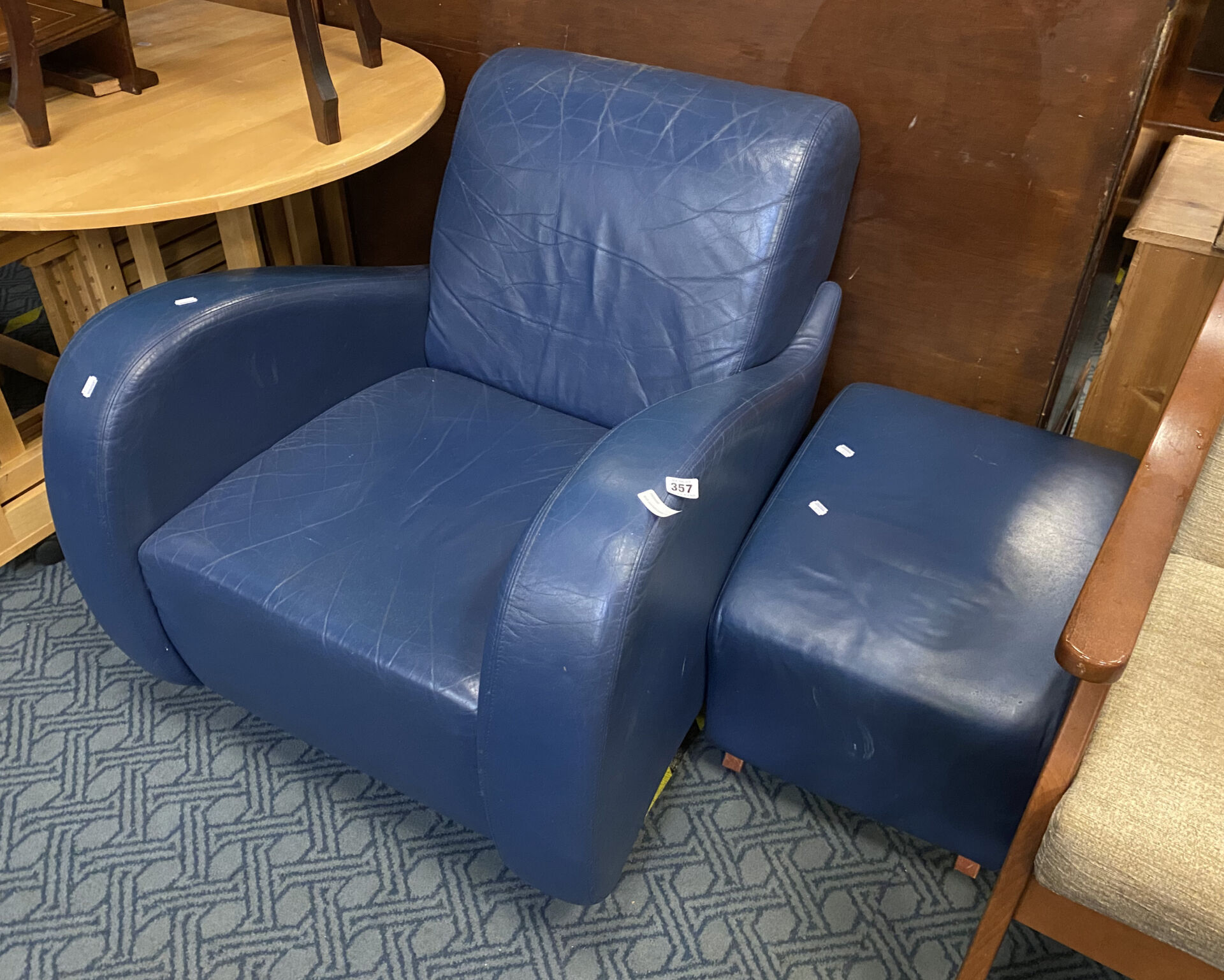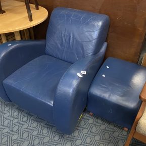 BLUE LEATHER CHAIR & STOOL