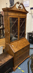 BURR WALNUT BUREAU BOOKCASE