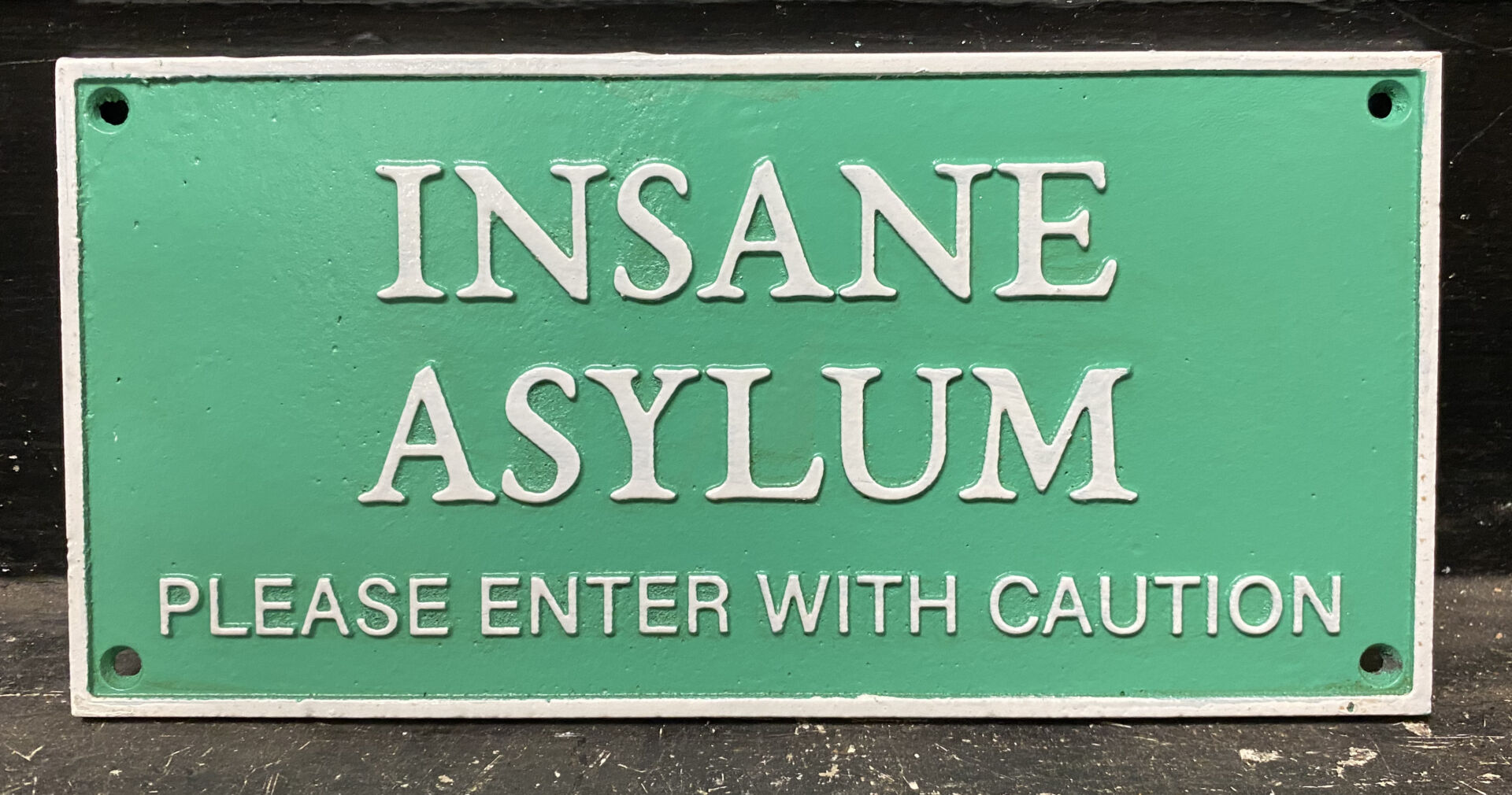 CAST IRON ''INSANE ASYLUM'' SIGN