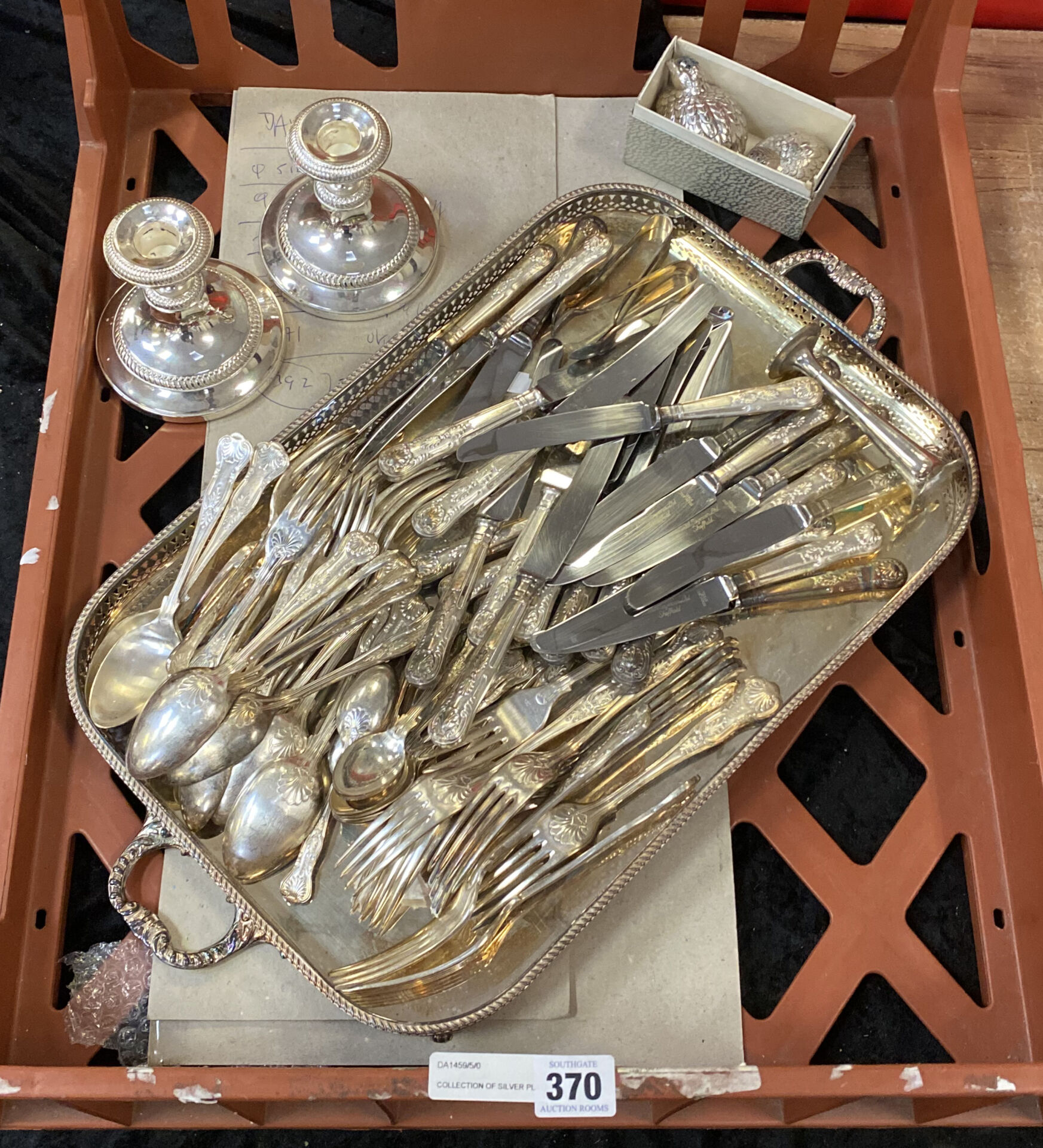 COLLECTION OF SILVER PLATE CUTLERY & OTHER