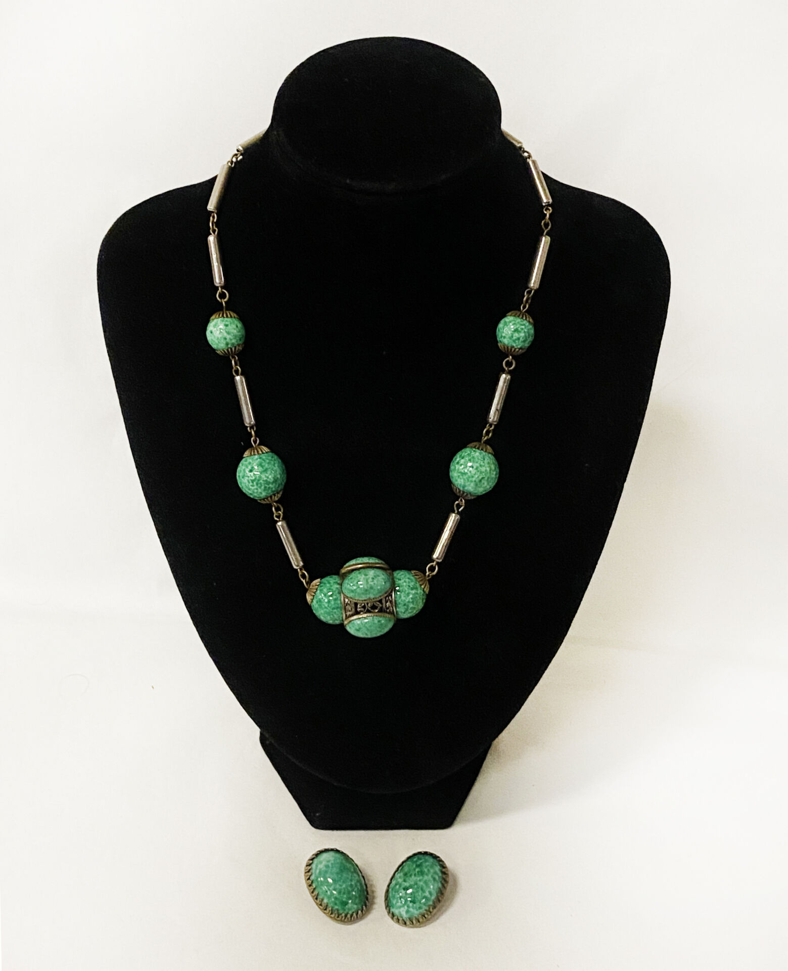 CZECH PEKING GLASS BEADED NECKLACE & ACCOMPANYING EARRINGS
