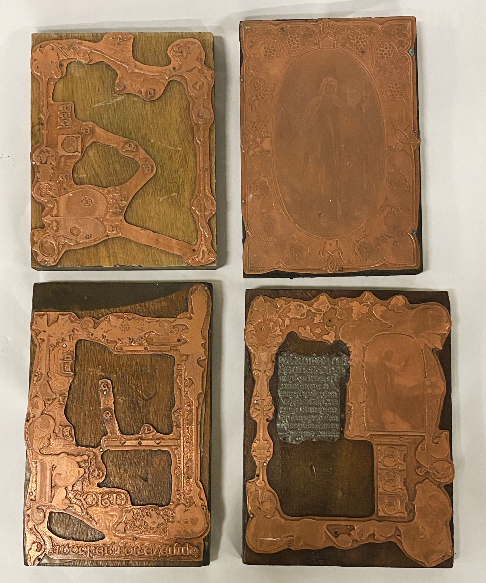 FOUR COPPER / WOOD PRINTING PLATES/ BLOCKS