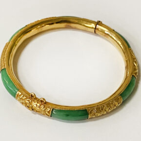 HIGH CARAT GOLD JADE BANGLE - 20.7 GRAMS APPROX
