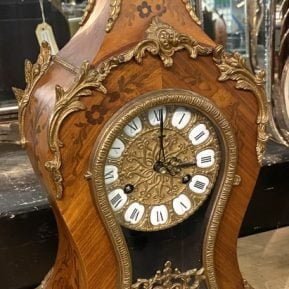 INLAID GERMAN MANTLE CLOCK WITH PENDULUM & KEY BY FRANZ HERMLE & SON