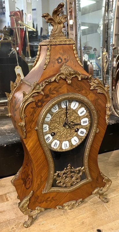 INLAID GERMAN MANTLE CLOCK WITH PENDULUM & KEY BY FRANZ HERMLE & SON