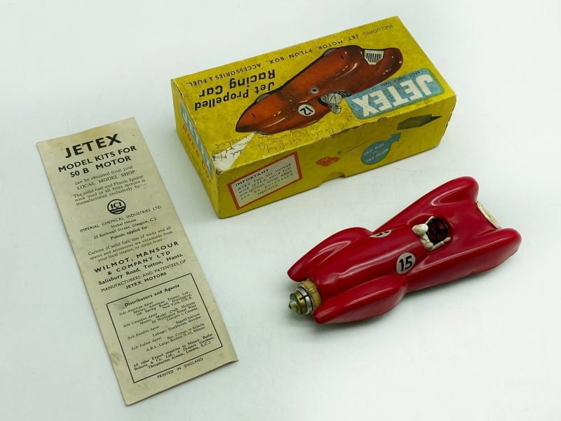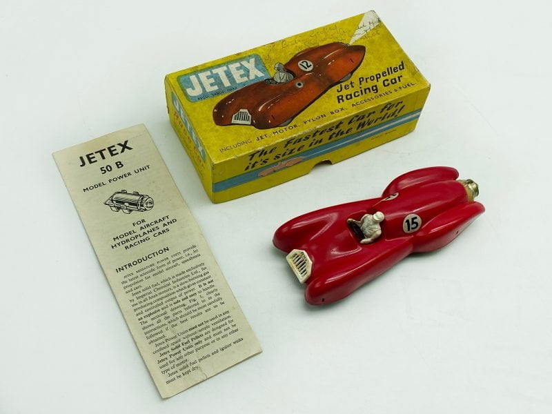JETEX JET PROPELLED RACING CAR IN GREAT CONDITION WITH BOX - APPROX 22.95 GRAMS IN CASE
