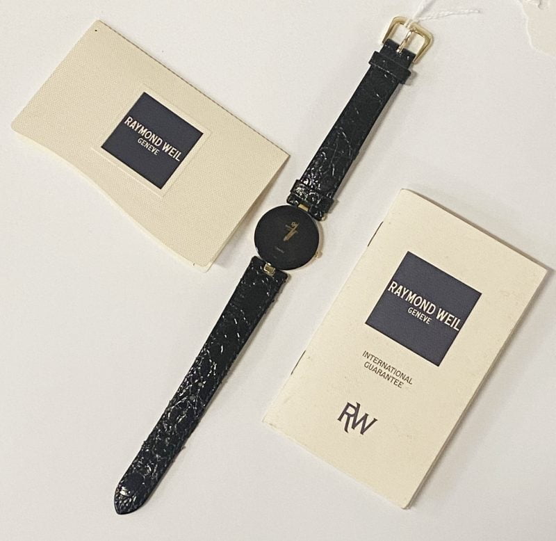 LADIES RAYMOND WEIL OTHELLO PLAQUE GOLD PLATED QUARTZ WRISTWATCH WITH CERTIFICATE & NEW BATTERY