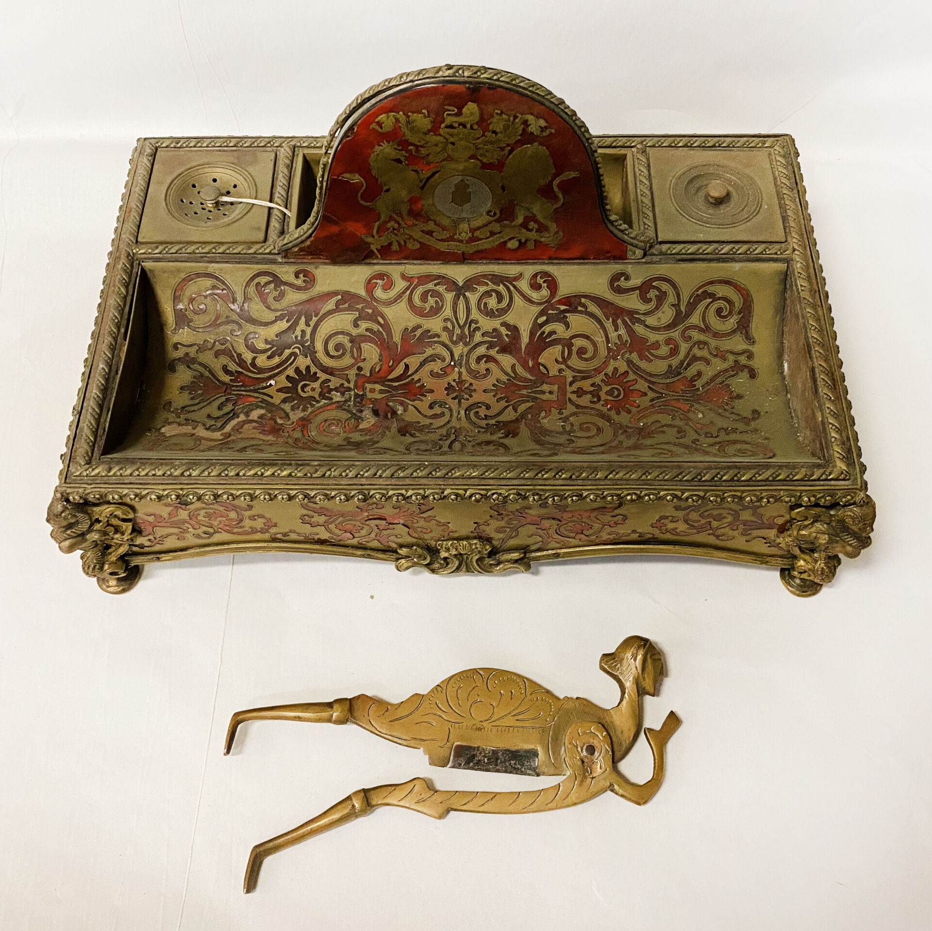 LOUIS X1V STYLE INKWELL - BOULLE, INLAID A/F 20 GRAMS APPROX