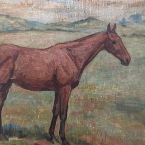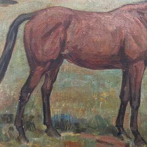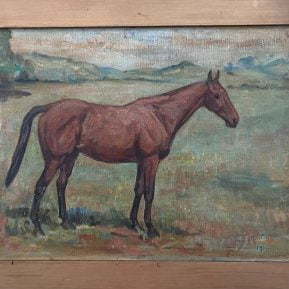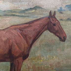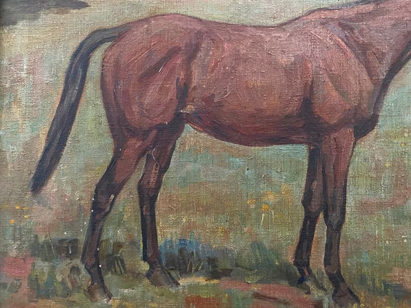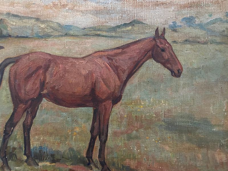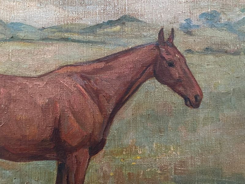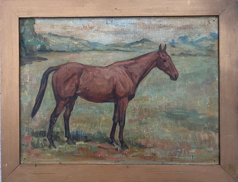 MAY BURTON 1901-1995 OIL ON CANVAS - PORTRAIT OR HORSE - SIGNED & DATED 1932 - 31CM X 41CM - ORIGINAL CONDITION, NEEDS A CLEAN