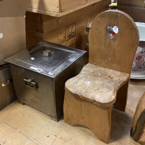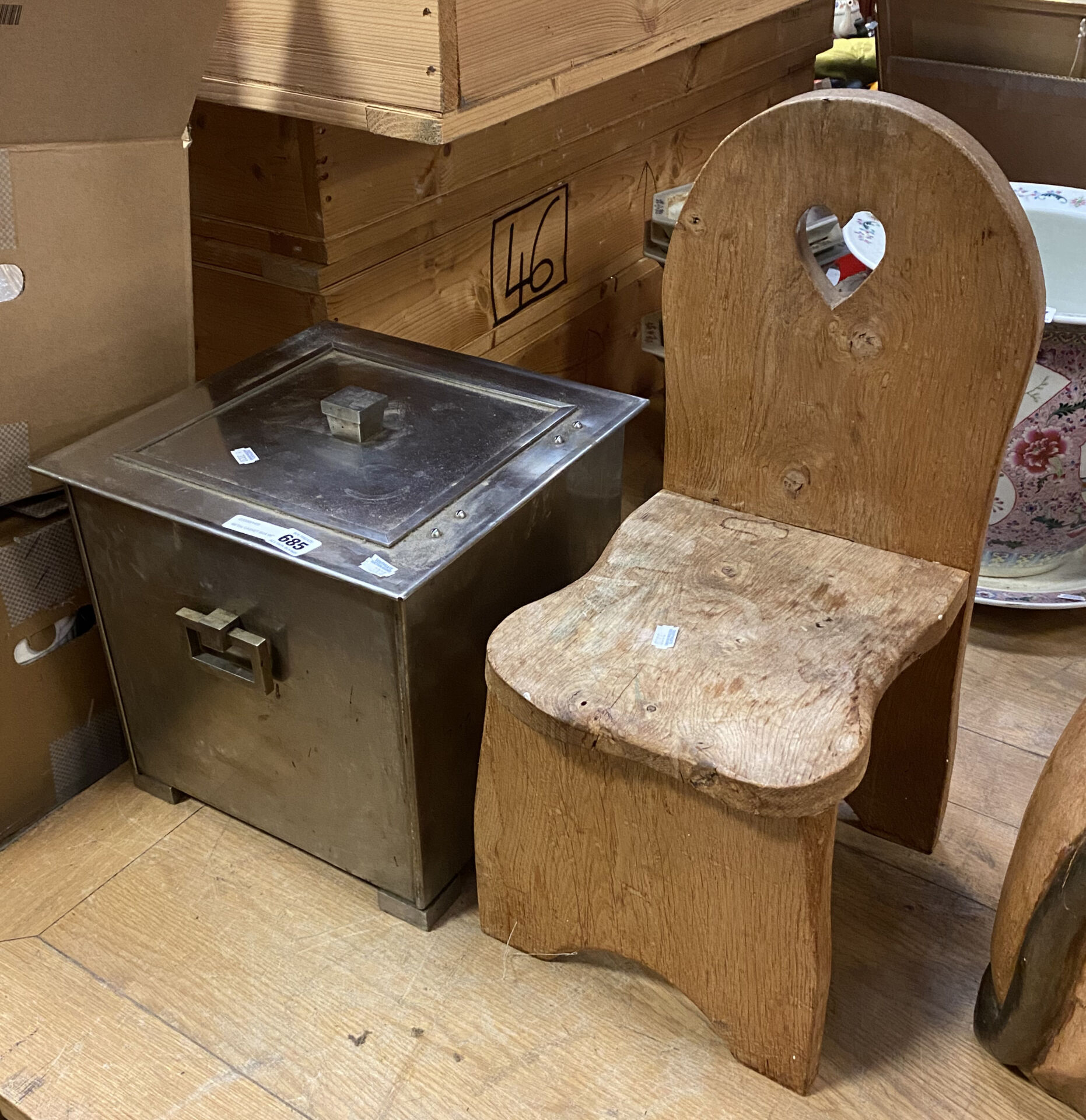 METAL CASKET BOX WITH A SMALL CHILDS CHAIR