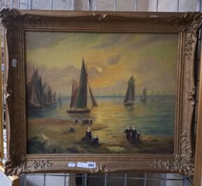 OIL ON CANVAS OF DUTCH HARBOUR SCENE 55CM X 46CM
