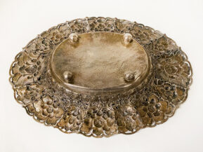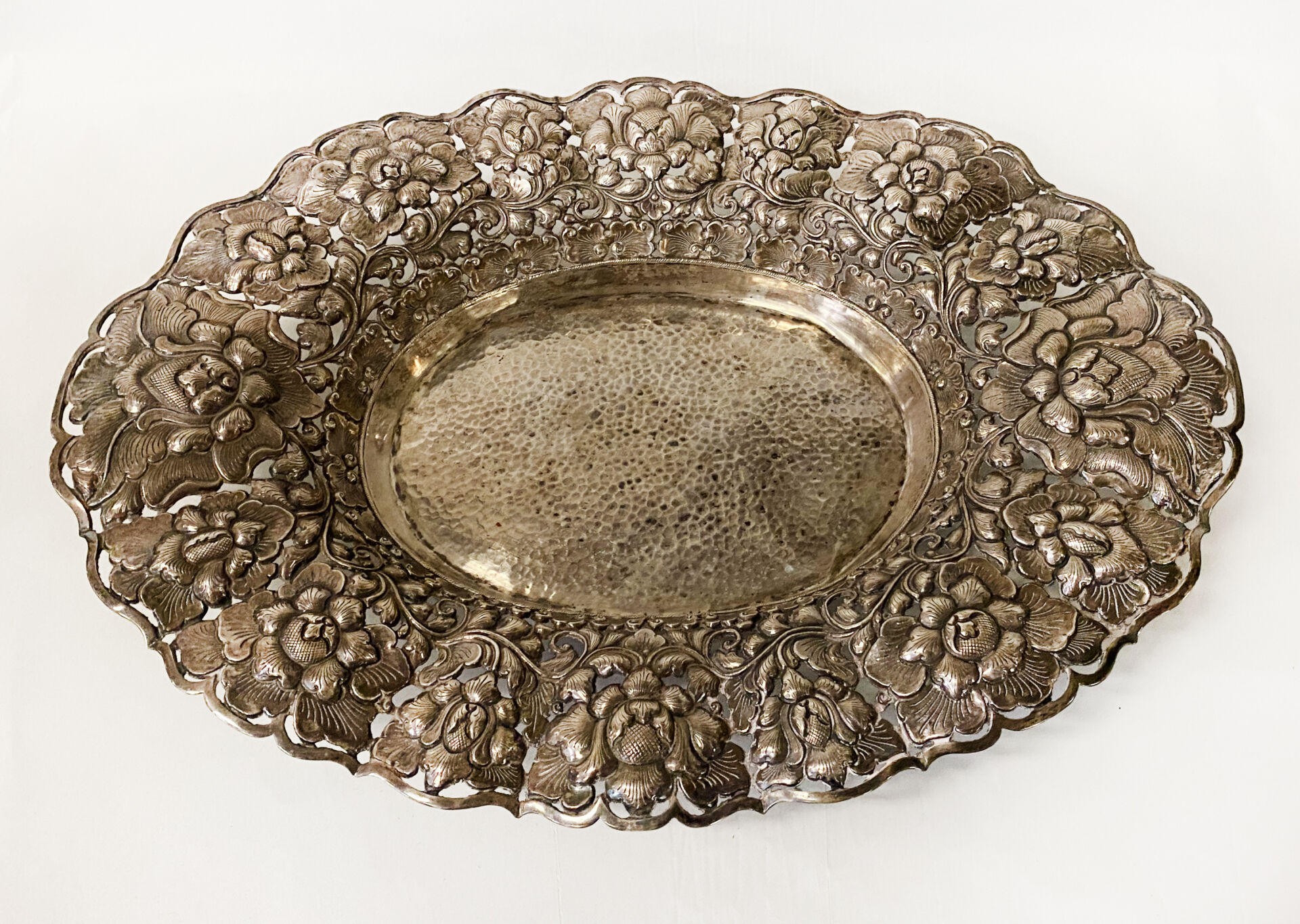 ORNATE 800 SILVER DISH - APPROX 475 GRAMS - 36CMS APPROX