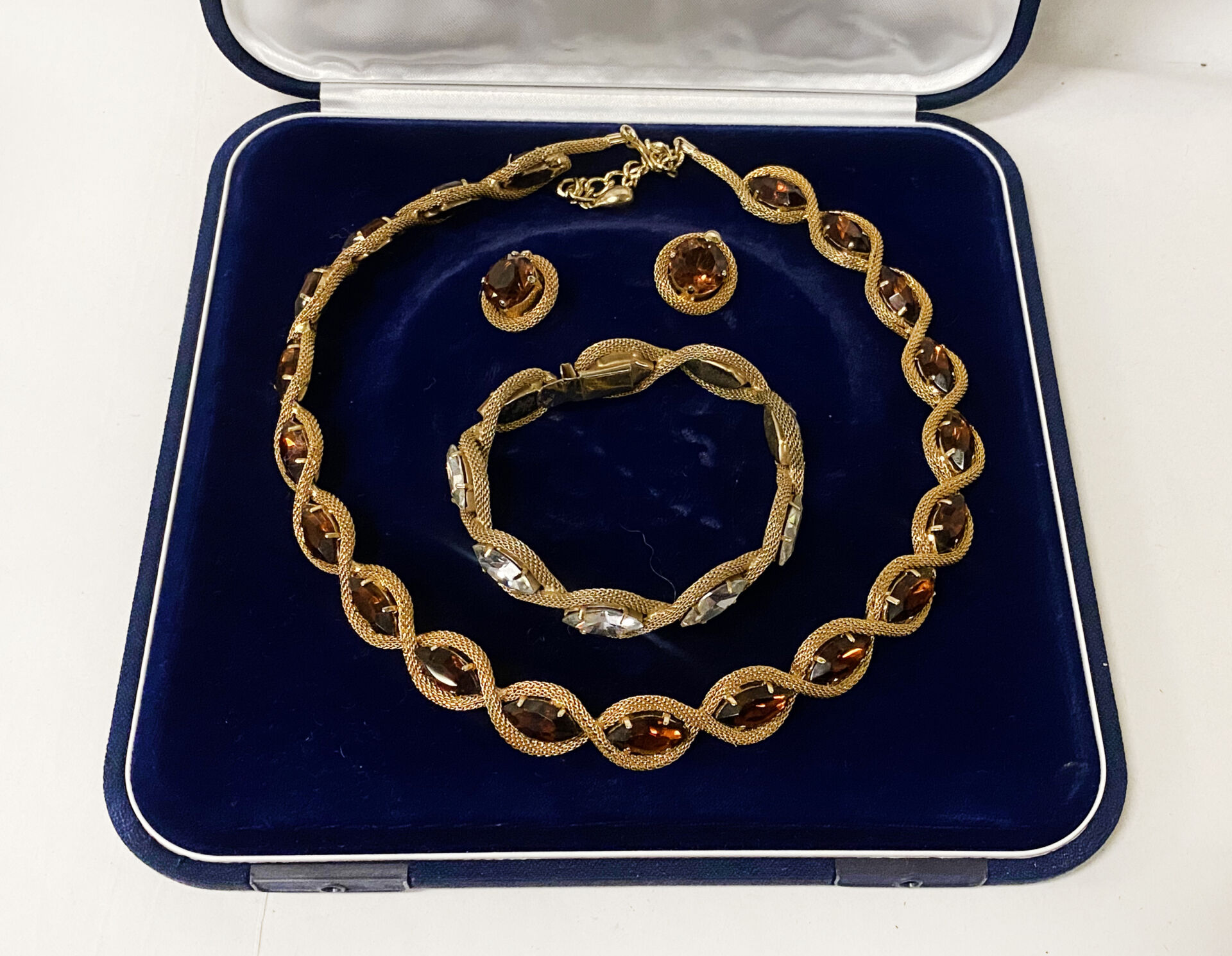 ROPE EFFECT SMOKEY QUARTZ CHAIN & EARRINGS WITH A GLASS GEMSTONE ROPE EFFECT BRACELET
