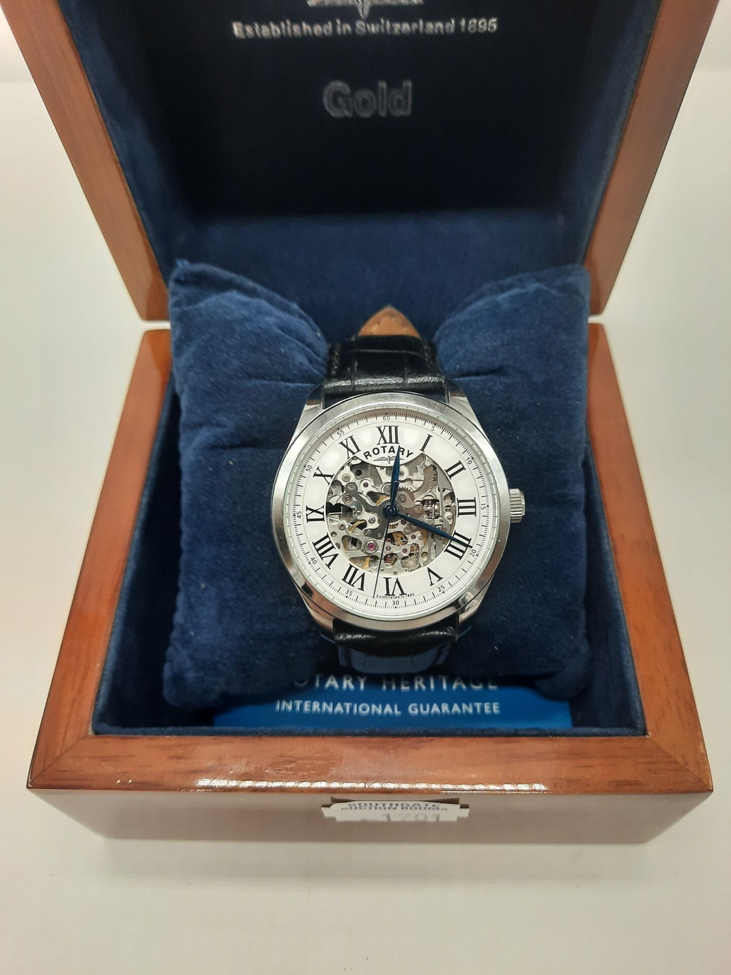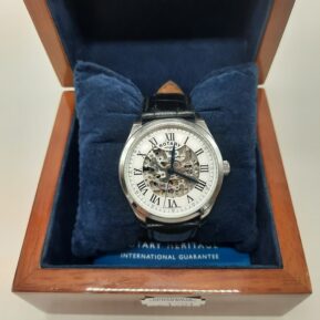 ROTARY SKELETON GENTS WATCH IN ROTARY WOODEN BOX