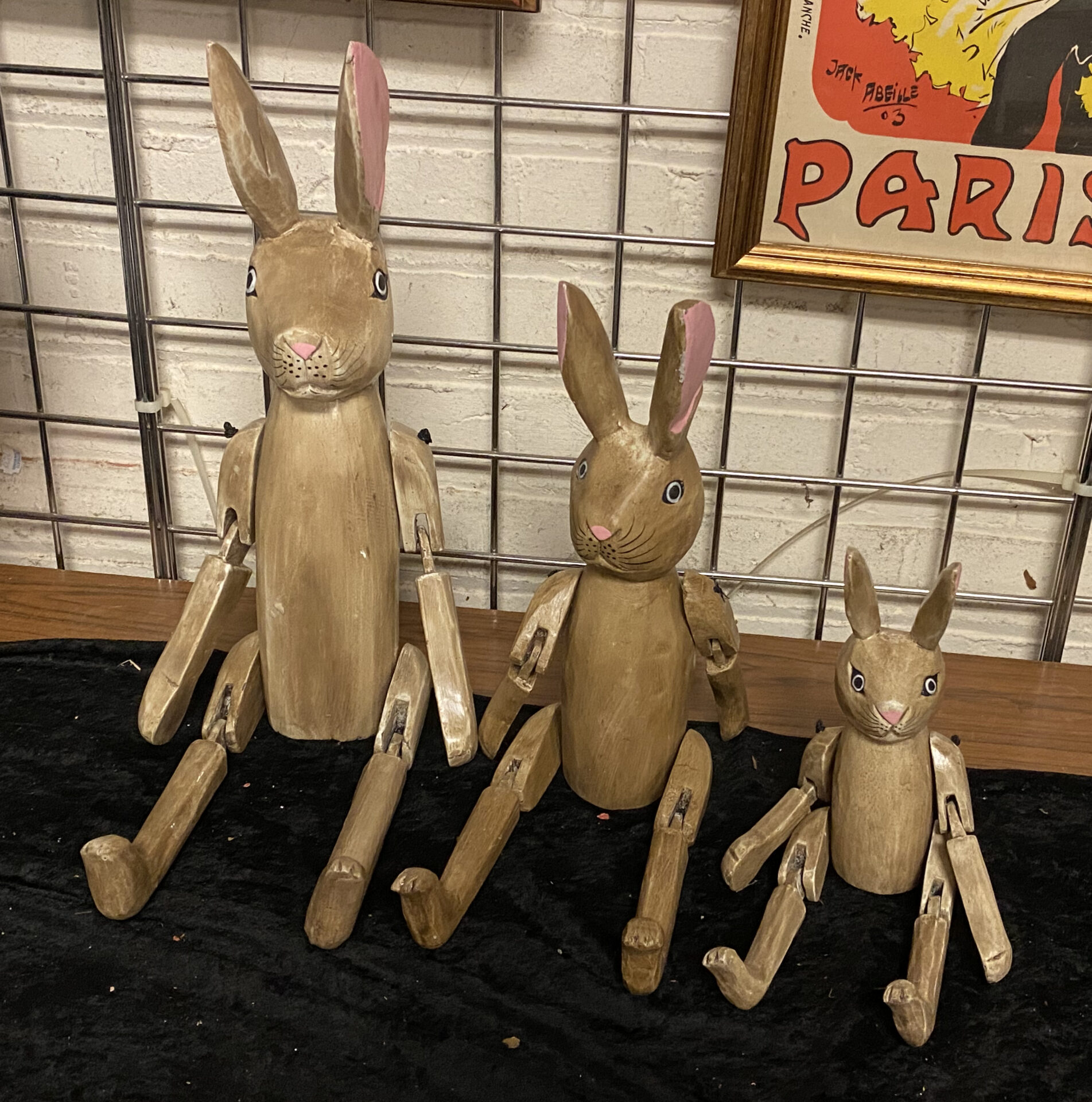 SET OF 3 WOODEN ARTICULATING RABBITS