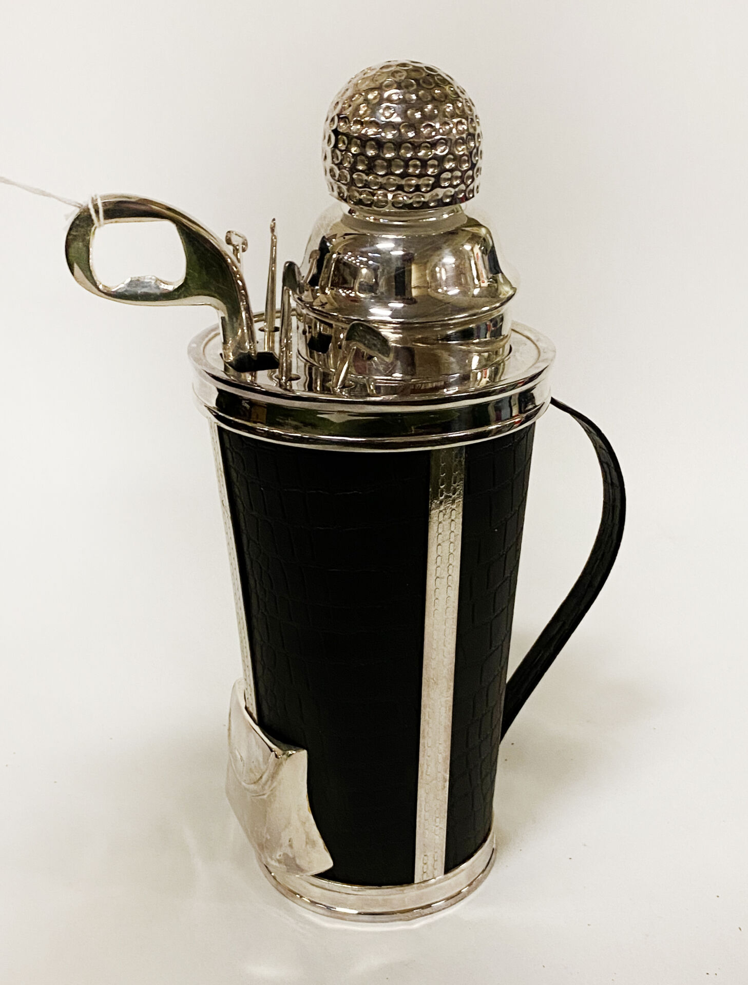 SILVER PLATED GOLF BAG COCKTAIL SHAKER