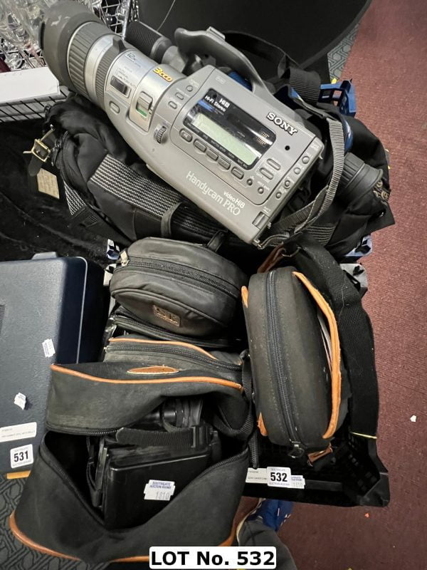 SONY HANDYCAM PRO IN CARRY CASE WITH OTHER CAMERA EQUIPMENT