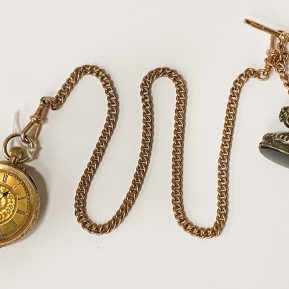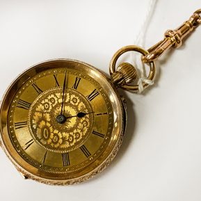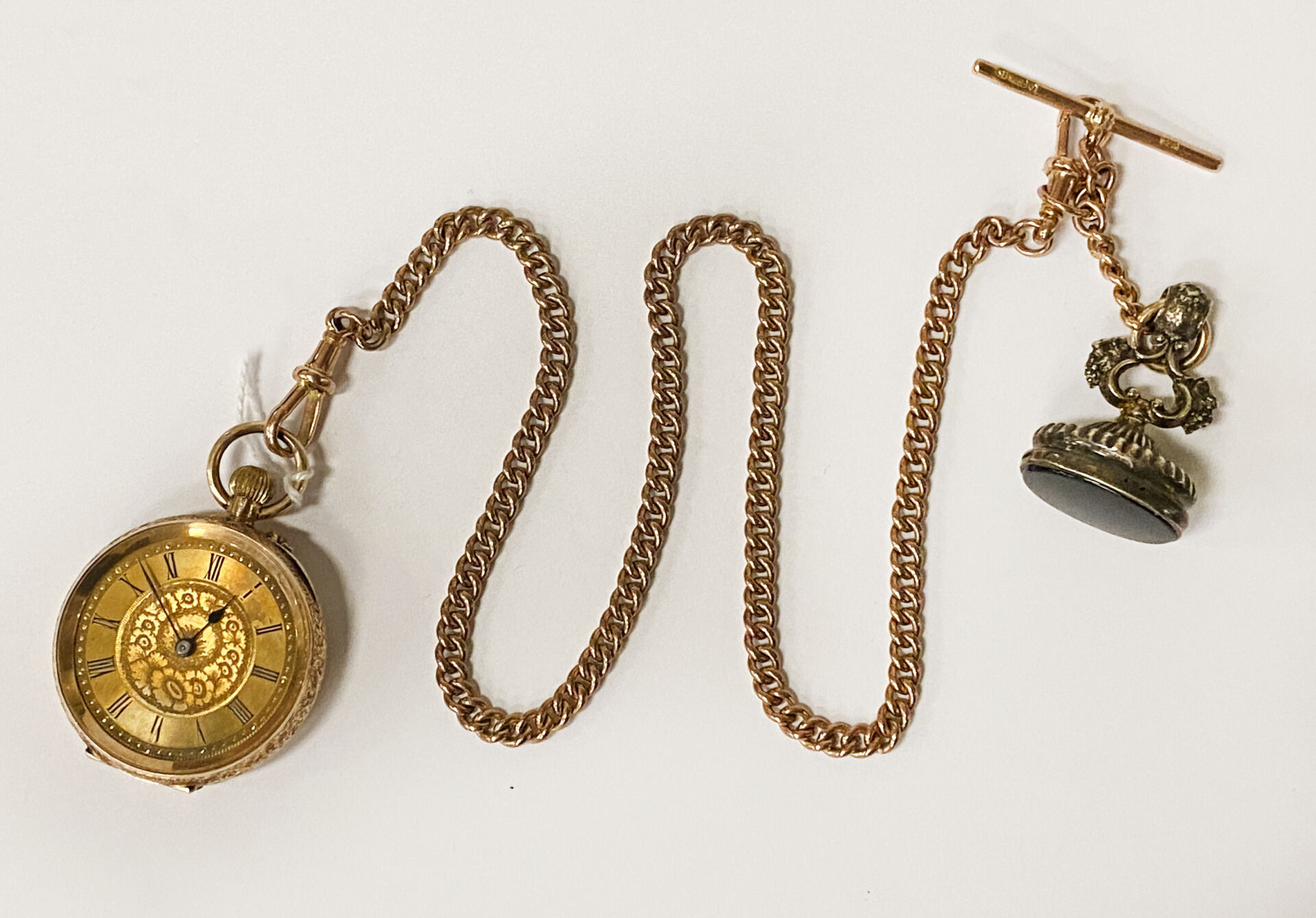 VICTORIAN 14CT GOLD FOB WATCH & 9CT ALBERT CHAIN